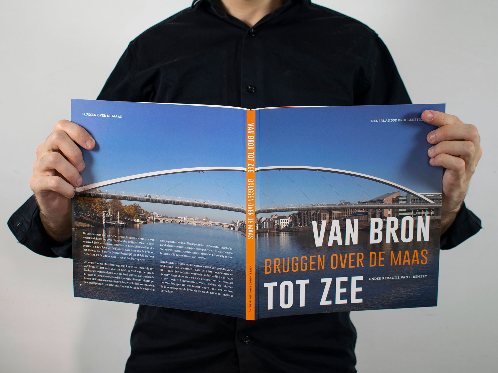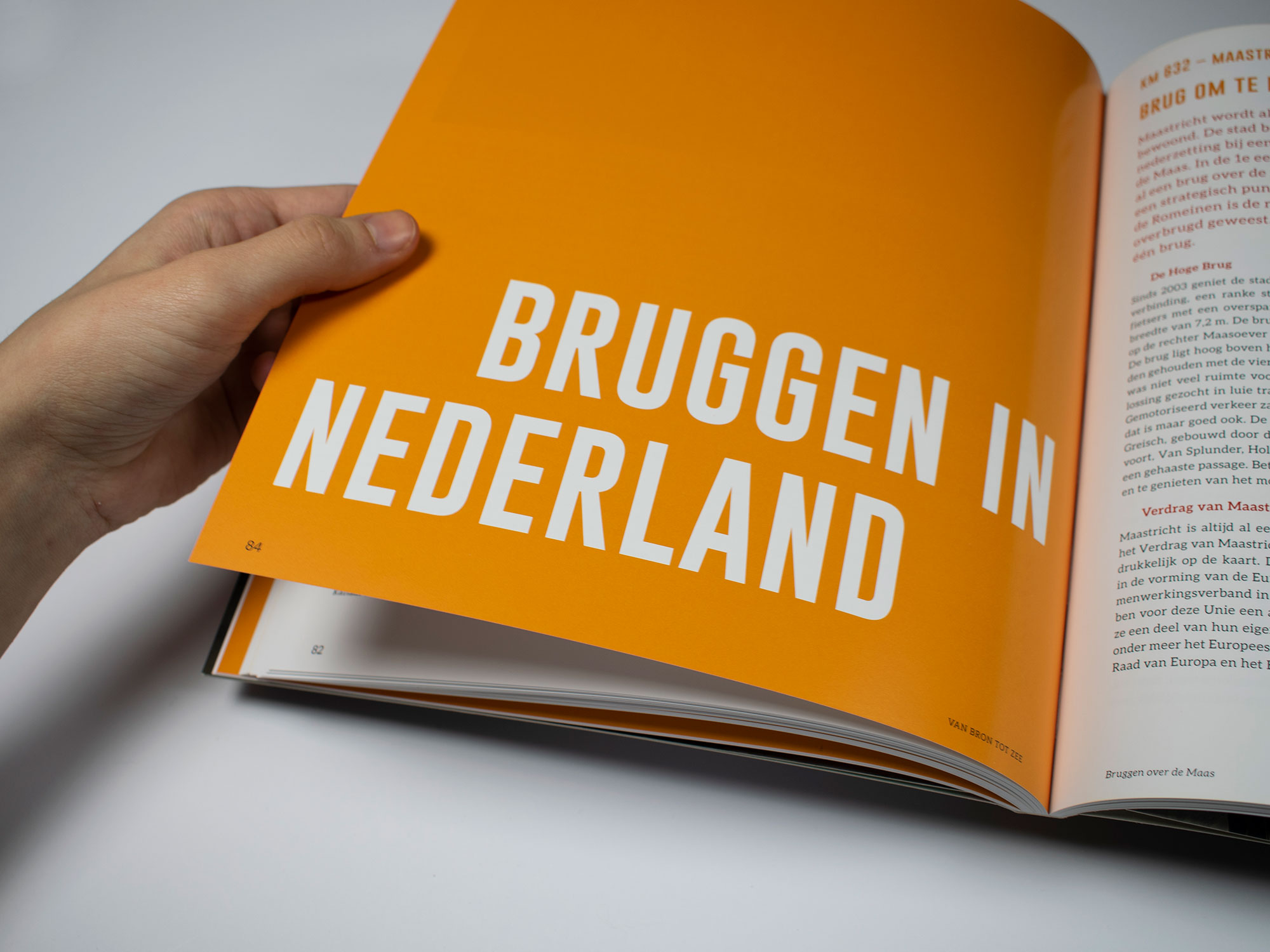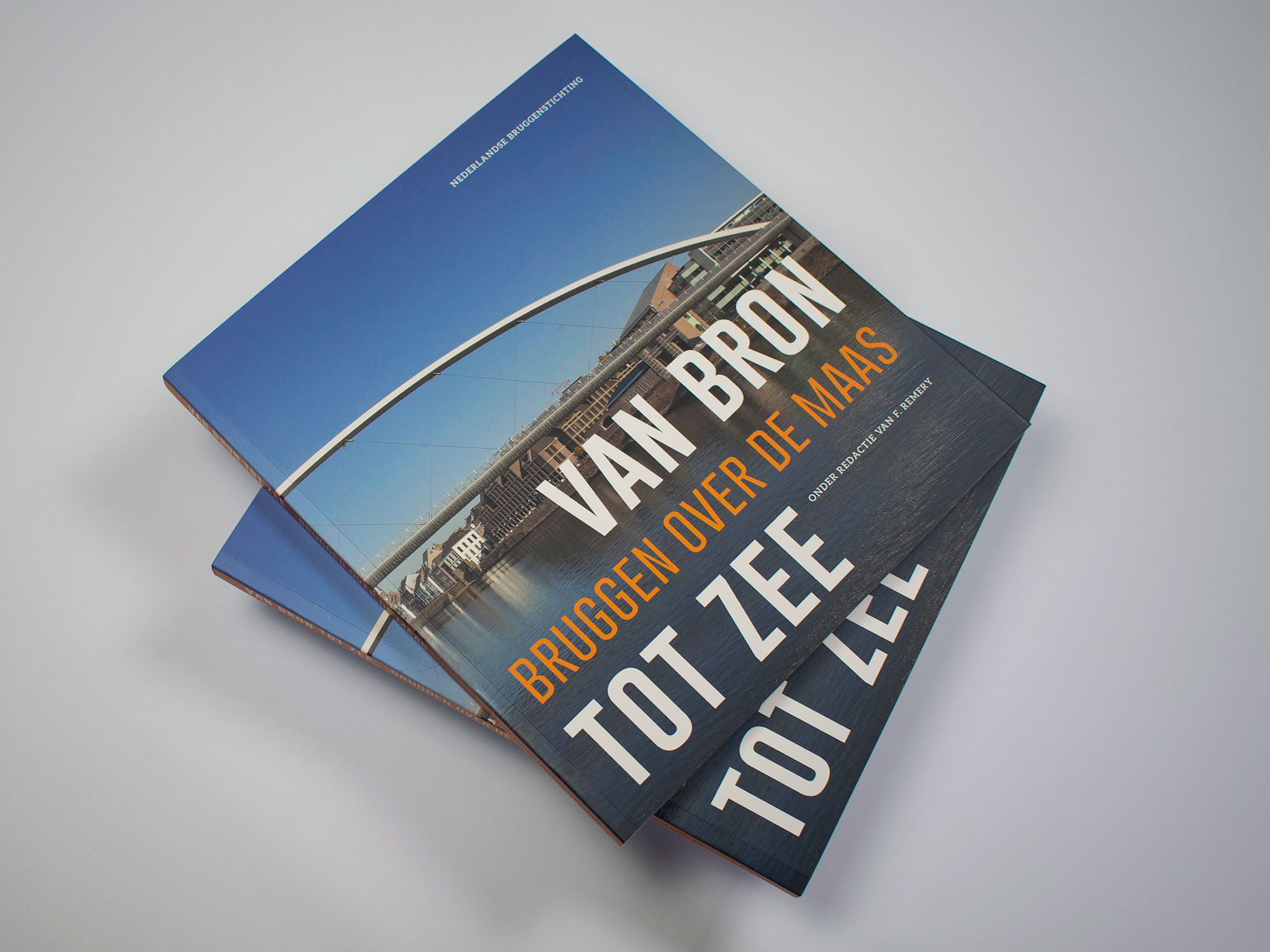 Progetto e realizzazione del libro ‘Dalla sorgente alla costa: tutti i ponti sulla Mosa’ per l’Associazione Nazionale dei ponti Olandesi. Lo stile proposto suggerisce le fattezze robuste, consistenti e raffinate dei ponti presentati in quest’opera autorevole.